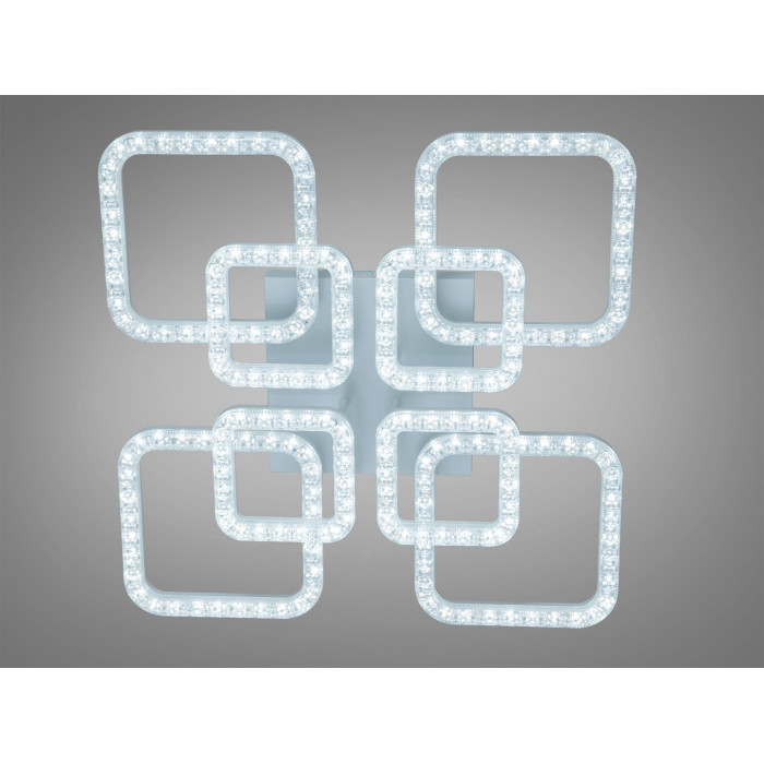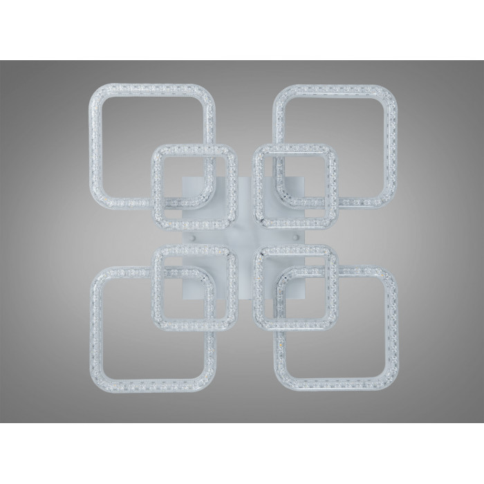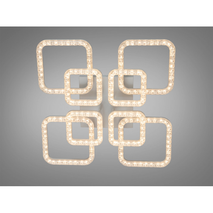 Стельова світлодіодна люстра у білому кольорі пропонує збалансоване поєднання дизайну та продуктивності. Конструкція з квадратними рамками формує акуратний геометричний малюнок на стелі, а вісім світлових модулів розкривають потужність 140 W, що може бути достатнім для кімнат площею орієнтовно до 24 м². Модель кріпиться впритул до стелі та керується звичайним настінним вимикачем, без пульта та складних сценаріїв — лаконічне рішення для щоденного використання.