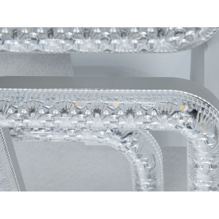 Світильник побудований на композиції з квадратних рамок у білому виконанні. Така форма створює візуальний ритм та акуратну симетрію, що добре поєднується з мінімалістичними та сучасними інтер’єрами. Напівпрозорі акрилові розсіювачі м’яко пом’якшують світло, зменшуючи жорсткі тіні. Металева основа забезпечує надійність кріплення, а біле покриття виглядає стримано та доречно у більшості кольорових схем приміщення.