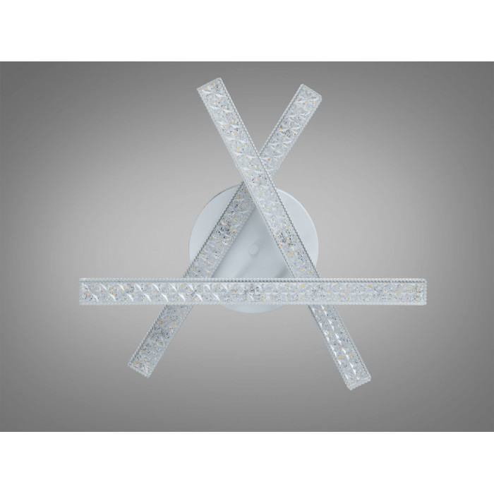 Конструкція побудована на трьох перехресних LED-модулях, що утворюють графічний “X”-силует. Білий матовий корпус візуально полегшує світильник і поєднується з різними палетами стелі та стін. Акрилові розсіювачі пом’якшують світловий потік та допомагають знизити різкі тіні, тож освітлення сприймається комфортно для очей. Низький профіль підходить для приміщень із невисокими стелями, де важлива економія простору.