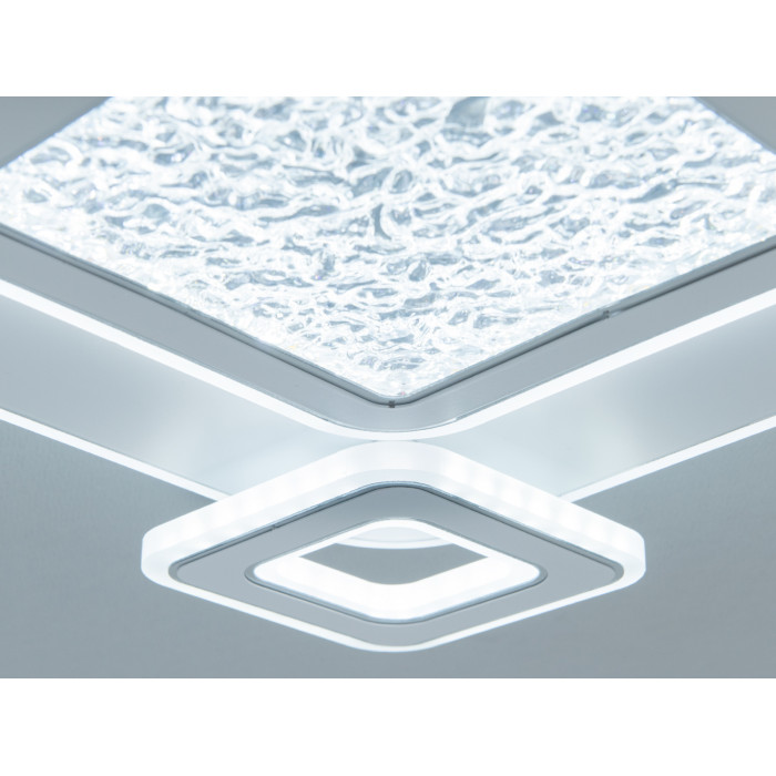 Корпус виконано у стриманому стилі з геометричними акцентами. Низький профіль створює акуратний вигляд на стелі, а прозорий або матований розсіювач формує м’який рівномірний потік світла. Біле покриття надає відчуття чистоти та візуально полегшує простір, тому світильник не перевантажує стелю навіть у невеликих кімнатах.