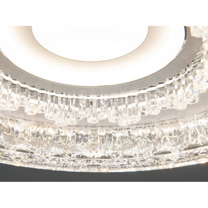 Висновок: якщо потрібне яскраве стельове освітлення з можливістю швидко перемикати теплий, нейтральний або холодний відтінок через звичайний вимикач, ця LED люстра 86 Вт у білому кольорі може стати практичним рішенням для кімнат площею до 15 м². Дизайн із прозорими елементами та м’яким розсіюванням додає світлу глибини, залишаючись стриманим і сучасним.