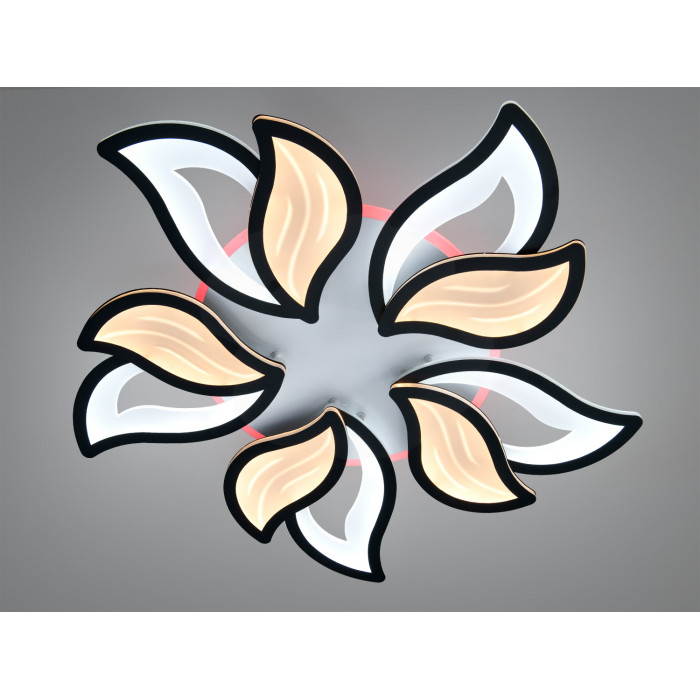 Ця стельова LED люстра Diasha у білому кольорі з дизайном у вигляді пелюсток поєднує мʼяке розсіяне світло та зручне дистанційне керування. Завдяки трьом світловим модулям і потужності близько 78 W, модель доцільно використовувати як основне освітлення в кімнатах площею приблизно до 13 м². Невелика висота конструкції робить люстру доречною для стандартних і низьких стель, а трикольорова підсвітка основи допомагає підкреслити настрій простору.