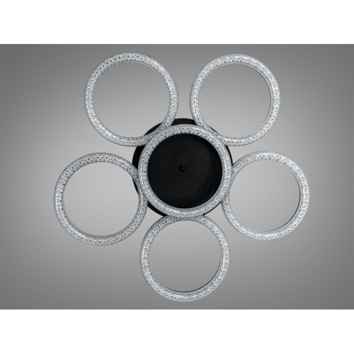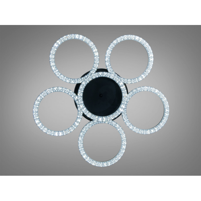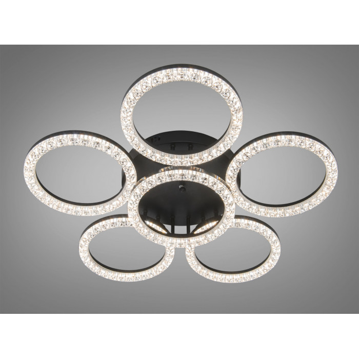 Стельова LED люстра з кільцями Diasha MX4770-5+1BK у чорному кольорі створює виразне, рівномірне освітлення для просторів до 25 м². Композиція з шести кілець (формат умовно 5+1) з акриловими розсіювачами та кристалічним декором формує сучасний вигляд і підкреслює геометрію інтер’єру. Модель монтується безпосередньо до стелі та передбачає стабільну роботу в ролі основного освітлення.