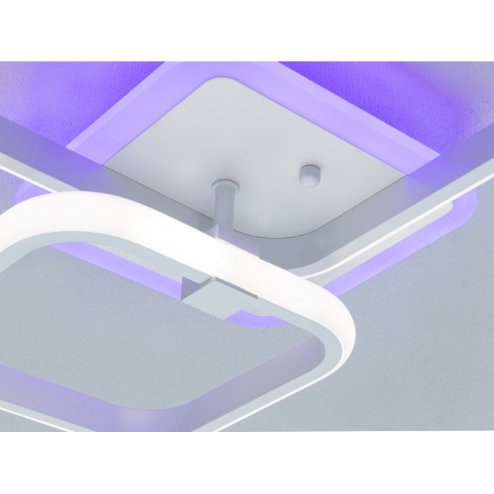 Головний акцент — квадратні LED-модулі, скомпоновані у сучасну багаторівневу форму. Білий колір корпусу підкреслює мінімалістичну естетику та легко поєднується з оздобленням стелі. Світлорозсіювачі з акрилу забезпечують рівномірне світло без різких тіней, а монтаж упритул до поверхні допомагає акуратно встановити люстру навіть у приміщеннях зі стандартною висотою стелі.