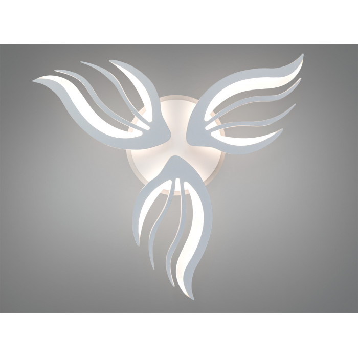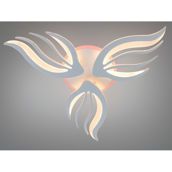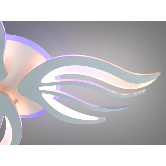 Стельова LED люстра 145 Вт у білому виконанні поєднує динамічні хвилясті елементи з функціональністю сучасного освітлення. Пластичні форми і декоративні лінії нагадують полумʼя або пелюстки, а акцентне кольорове підсвічування створює виразний настрій у кімнаті. Модель передбачає дистанційне керування, регулювання яскравості та зміну температури світла, що допомагає підлаштувати освітлення під різні сценарії щодня.