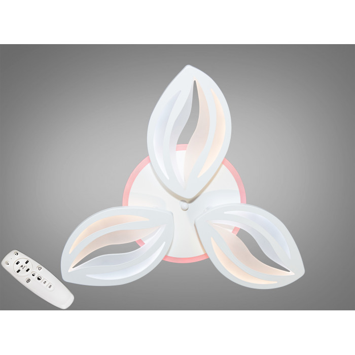 Декоративна світлодіодна люстра з пультом, димером на 65 Вт є справжнім витвором мистецтва, що поєднує в собі елегантність та інноваційні технології. LED люстра складається з декількох рівнів освітлювальних елементів, що нагадують листя або пелюстки квіток, створюючи легкий та повітряний вигляд. Кожен "листок" виконаний з високоякісного акрилу, що імітує природну текстуру, і освітлюється від країв до центру, демонструючи ніжний перехід кольорів завдяки інтегрованому світлодіодному джерелу світла.