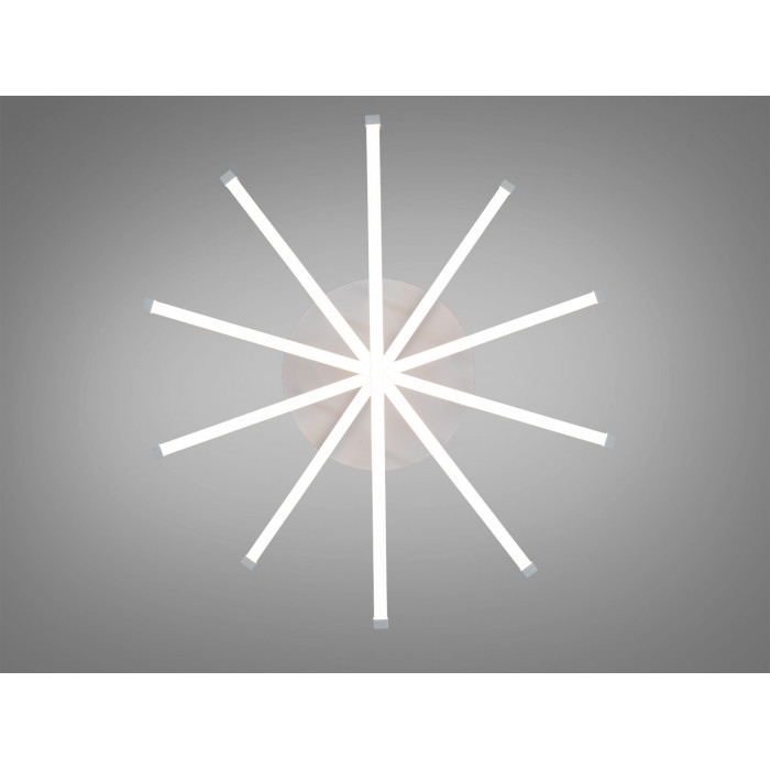 Світильник виконаний у вигляді симетрично розміщених планок з інтегрованими світлодіодними лініями. Біле матове покриття візуально полегшує конструкцію, а акрилові розсіювачі забезпечують м’яке, безпечне для очей розсіювання світла без локальних відблисків. Низький профіль підходить для приміщень з невисокими стелями та допомагає зберегти простір.