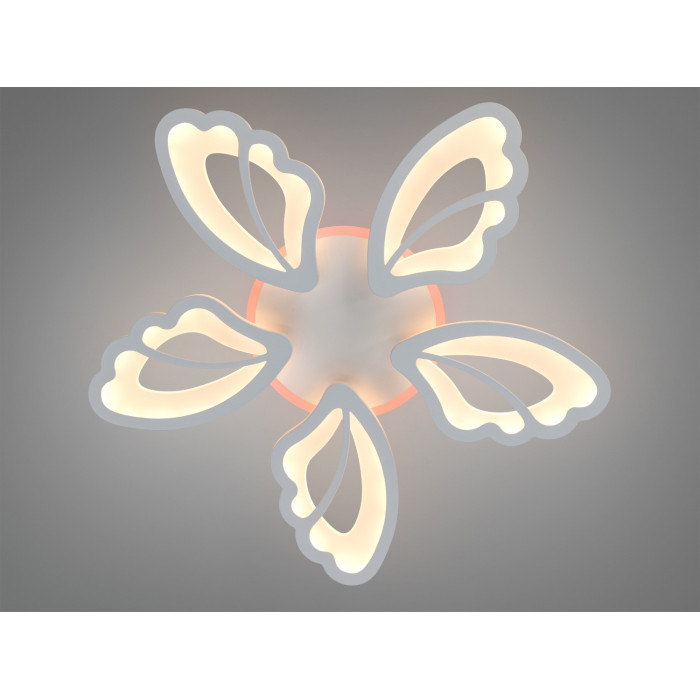 Три пелюсткові модулі формують акуратну композицію з плавними лініями. Біле покриття виглядає стримано і поєднується з більшістю сучасних інтер’єрів. Компактний накладний монтаж зручний для приміщень з невисокими стелями, а розсіювачі забезпечують рівномірний розподіл світла без різких тіней.