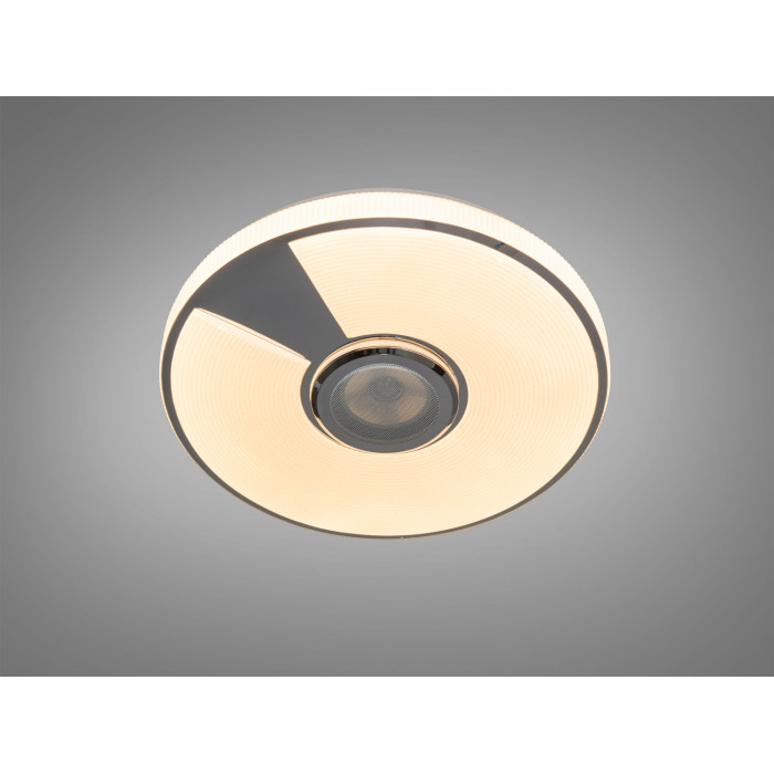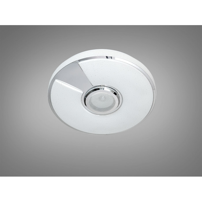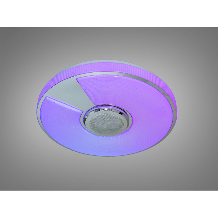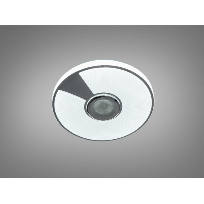 Ця LED стельова люстра білого кольору з RGB поєднує освітлення та відтворення музики у одному корпусі. Вбудована Bluetooth-колонка дає змогу слухати треки зі смартфона, а керування освітленням реалізоване через додаток Smart Life (платформа TUYA) або пульт ДК. Потужність 80 Вт передбачає комфортне загальне освітлення приміщення до приблизно 12 м² з можливістю точно підлаштувати яскравість і температуру білого світла.