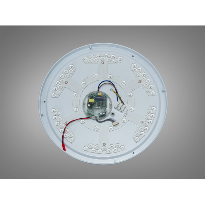 Круглий плафон із матовим розсіювачем забезпечує рівномірне безслепуче свічення. Акуратний білий корпус пасує до більшості сучасних інтер’єрів і не перевантажує стелю. Монтується накладним способом на монтажну планку: підведення живлення, фіксація корпусу — і світильник готовий до роботи.