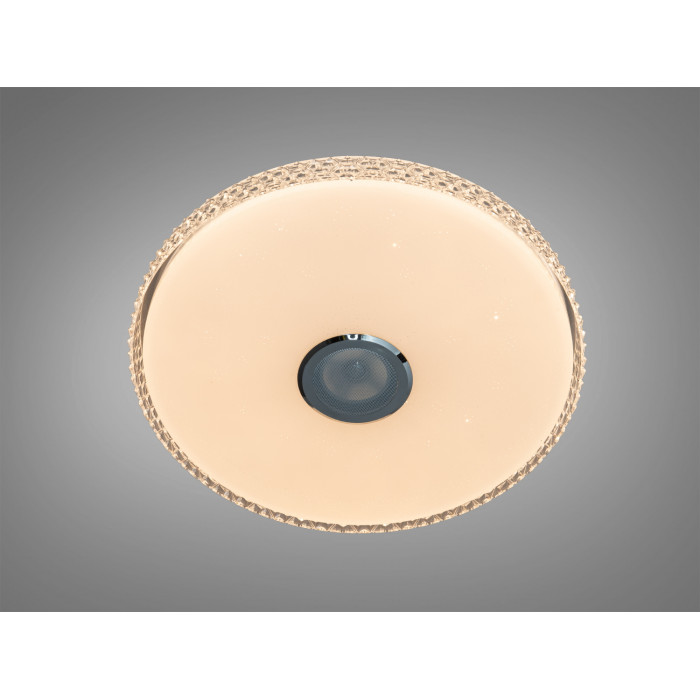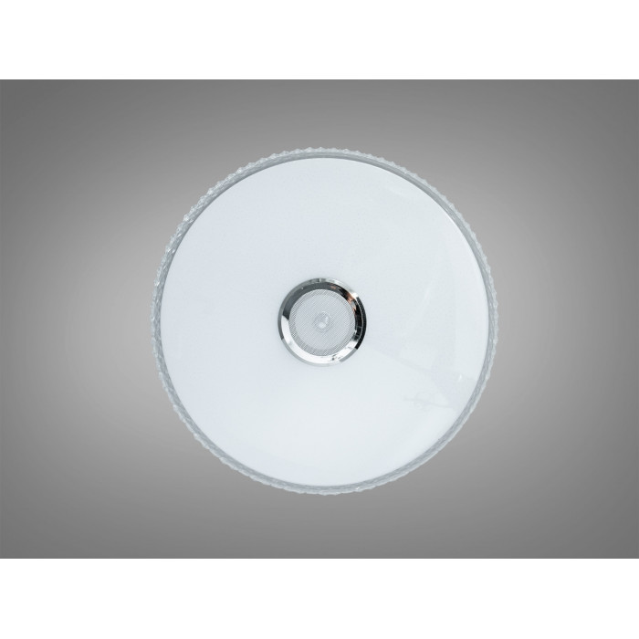 Ця LED стельова люстра білого кольору з RGB поєднує освітлення та відтворення музики у одному корпусі. Вбудована Bluetooth-колонка дає змогу слухати треки зі смартфона, а керування освітленням реалізоване через додаток Smart Life (платформа TUYA) або пульт ДК. Потужність 80 Вт передбачає комфортне загальне освітлення приміщення до приблизно 15 м² з можливістю точно підлаштувати яскравість і температуру білого світла.