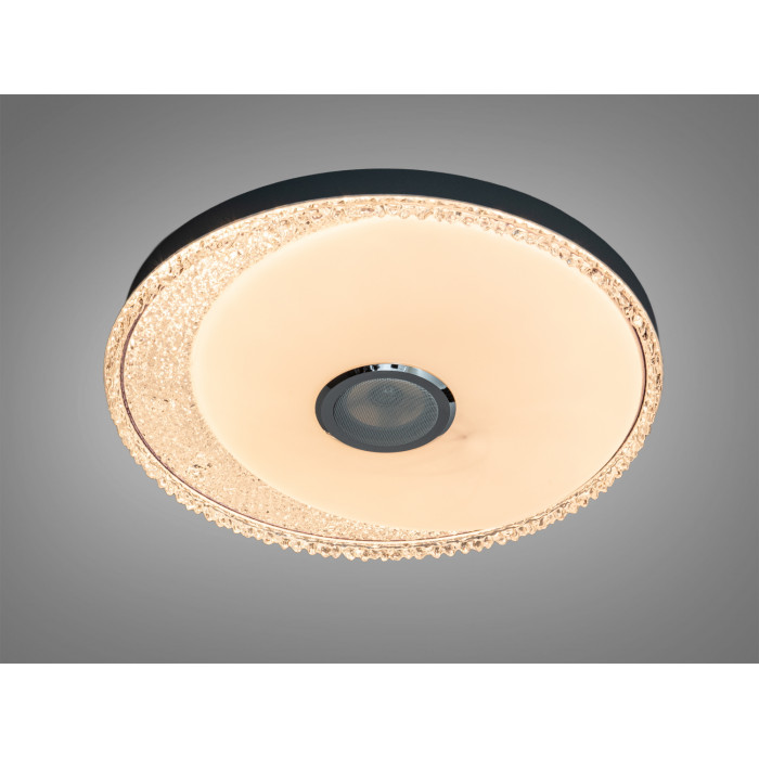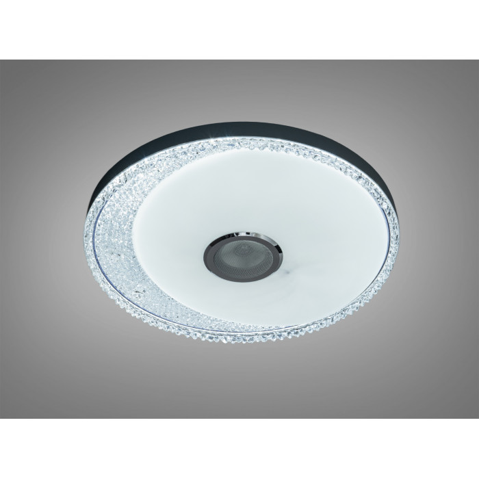 Ця LED стельова люстра білого кольору з RGB поєднує освітлення та відтворення музики у одному корпусі. Вбудована Bluetooth-колонка дає змогу слухати треки зі смартфона, а керування освітленням реалізоване через додаток Smart Life (платформа TUYA) або пульт ДК. Потужність 80 Вт передбачає комфортне загальне освітлення приміщення до приблизно 14 м² з можливістю точно підлаштувати яскравість і температуру білого світла.