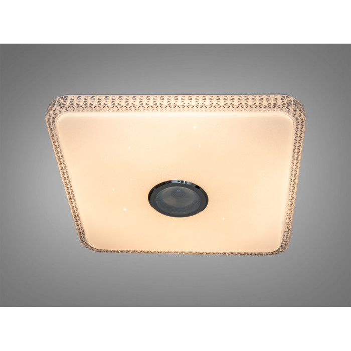 Ця LED стельова люстра білого кольору з RGB поєднує освітлення та відтворення музики у одному корпусі. Вбудована Bluetooth-колонка дає змогу слухати треки зі смартфона, а керування освітленням реалізоване через додаток Smart Life (платформа TUYA) або пульт ДК. Потужність 80 Вт передбачає комфортне загальне освітлення приміщення до приблизно 15 м² з можливістю точно підлаштувати яскравість і температуру білого світла.