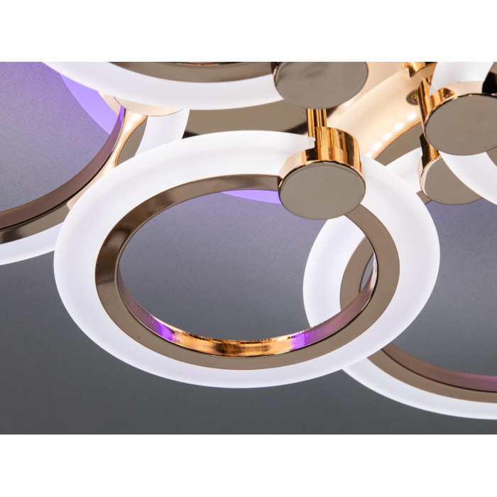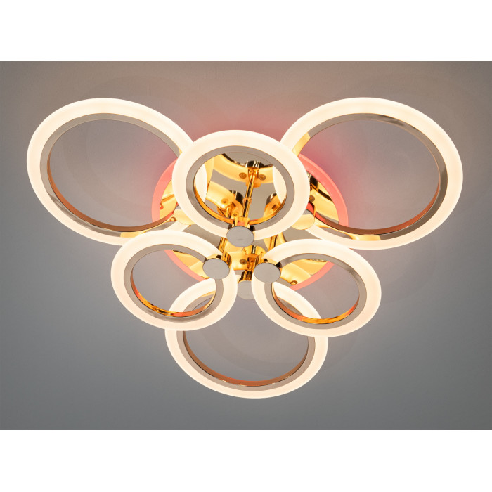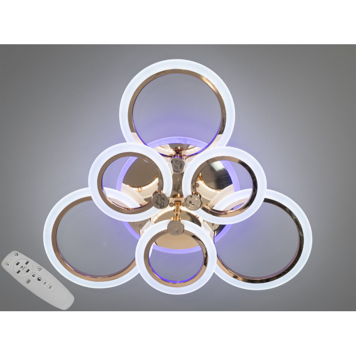 Стельова LED люстра з пультом, диммером та підсвічуванням, 110W — це витончене поєднання сучасних технологій, естетики та функціональності, що здатне стати центральним елементом вашого інтер′єру. Її дизайн відразу привертає увагу своїми геометрично досконалими кільцями, які гармонійно поєднують хромований колір основи з елегантним світінням акрилових розсіювачів. Ця акрилова люстра неначе оживає в просторі, створюючи враження, що світло плавно витікає з її серцевини, огортаючи кімнату теплом і затишком.