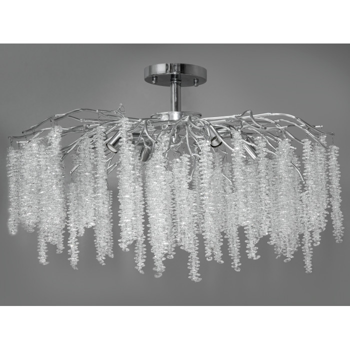 Купити люстру в зал з таким освітлювальним приладом означає внести в інтер'єр елемент витонченої природи та романтичної краси. Люстра "Гліцинія" створює в просторі відчуття свіжості та легкості, а її м'яке світло, що просіює крізь кришталеві грона, приносить відчуття спокою та затишку.