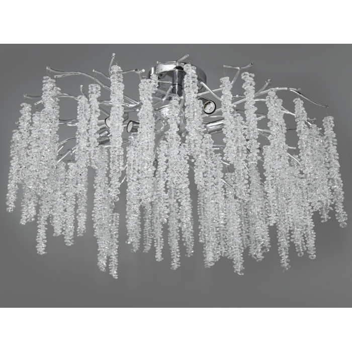НОВИНКА 2024 року! Люстра на фото це сучасна стельова кришталева люстра "Гліцинія", що є справжнім дизайнерським витвором. Її каркас із алюмінію міцно тримає безліч прозорих кришталів, що падають вниз, немов водоспади з чистої води або каскади довгих, ніжних квітів гліцинії, розпускаючись в просторі залу. Кожен кришталь плавно переходить в інший, створюючи невагому і ледь помітну грань між світлом і матерією.