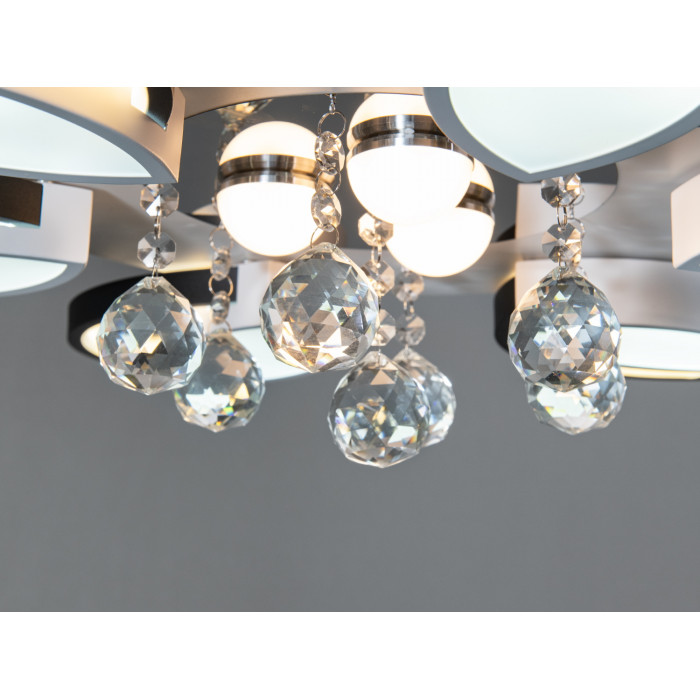 У комплекті з люстрою йде найсучасніший тип пульта з електронним диммером та регулятором кольору. З пульта можна включити один із встановлених режимів освітлення - тепле світло, холодне світло, нейтральне; включити режим "нічник" (люстра буде включена лише на 5% потужності LED-люстри), зменшити або збільшити яскравість на 50%, а якщо всього цього здасться мало - плавно відрегулювати рівень яскравості та колірну температуру.