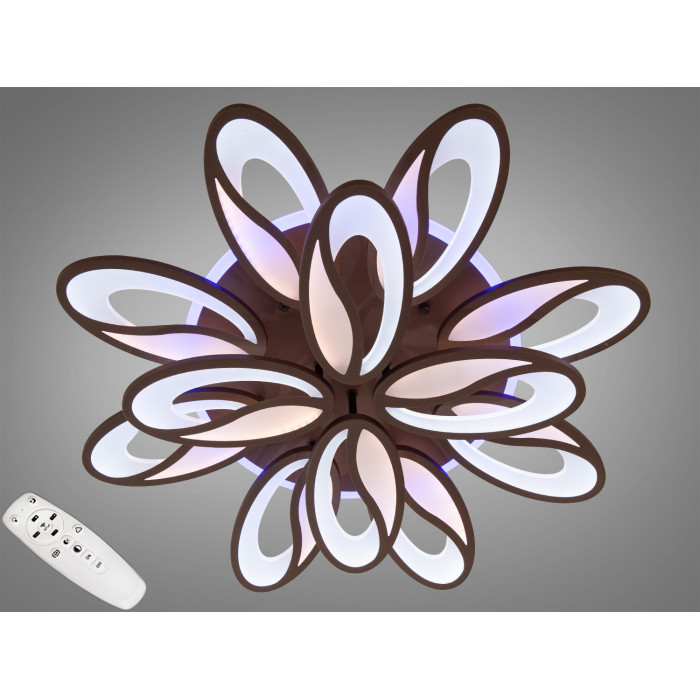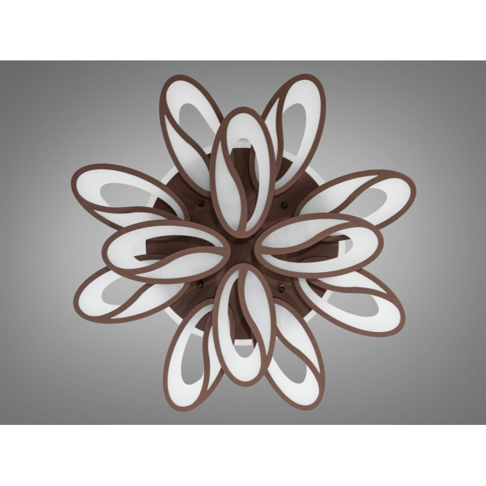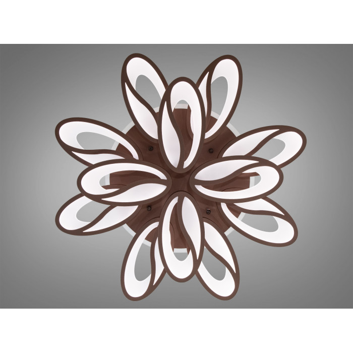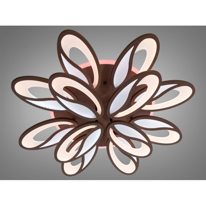 На зображенні ми бачимо нову стельову світлодіодну люстру на кухню з димером, що є виразом сучасного дизайну та інноваційних технологій в освітленні. За своєю формою, вона нагадує цвіт квітки або плавні витки балерини в танці, додаючи простору легкості та витонченості.