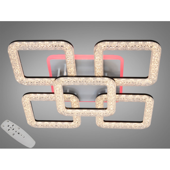Дизайн лед люстри оригінальний і сучасний. Вона ідеально підходить як лед люстра квадрати, так і для застосування в широкому спектрі просторів, включаючи led люстри в зал чи led люстра у вітальню. Потужність в 110W робить її відмінним вибором для основного джерела світла у великих приміщеннях.