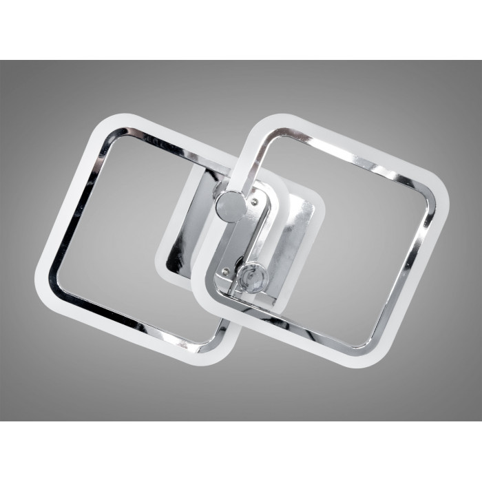 Ця екстравагантна стельова світлодіодна люстра є втіленням сучасного стилю та інноваційних технологій. Її елегантний дизайн із геометричними формами квадратів та вишуканим хромованим покриттям створює гармонійне поєднання естетики та функціональності. Стельова LED люстра у формі квадратів із плавними лініями виглядає стильно і водночас привертає увагу до сучасного інтер′єру. Вишукане підсвічування додає їй особливого шарму, а хромована поверхня віддзеркалює світло, надаючи кімнаті додаткову яскравість.