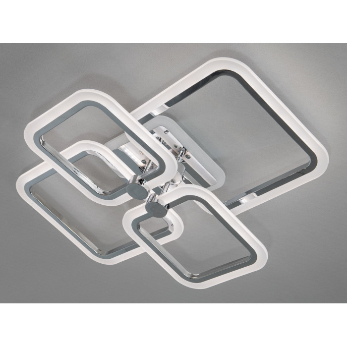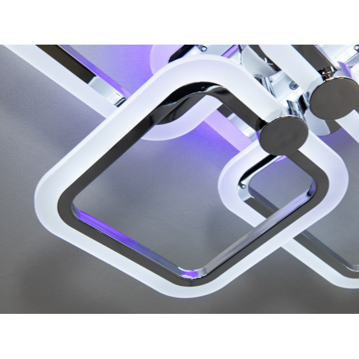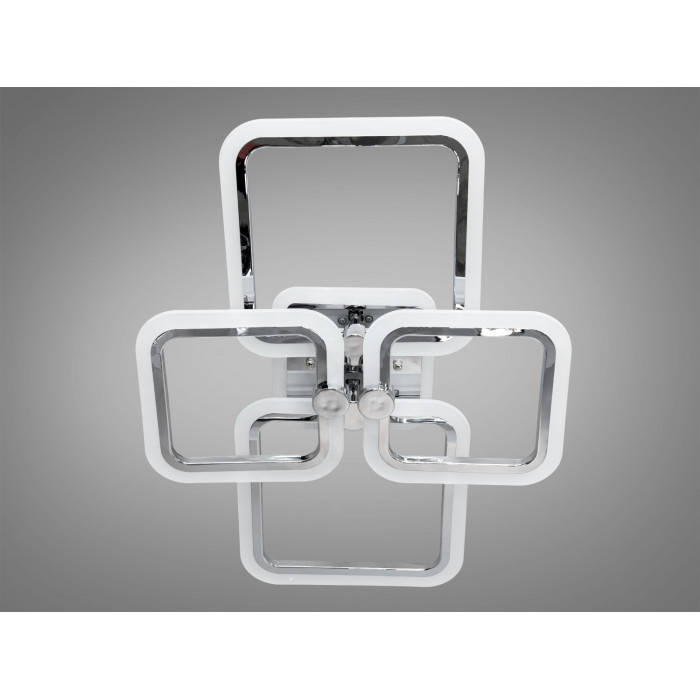 Ця екстравагантна стельова світлодіодна люстра є втіленням сучасного стилю та інноваційних технологій. Її елегантний дизайн із геометричними формами квадратів та вишуканим хромованим покриттям створює гармонійне поєднання естетики та функціональності. Стельова LED люстра у формі квадратів із плавними лініями виглядає стильно і водночас привертає увагу до сучасного інтер'єру. Вишукане підсвічування додає їй особливого шарму, а хромована поверхня віддзеркалює світло, надаючи кімнаті додаткову яскравість.