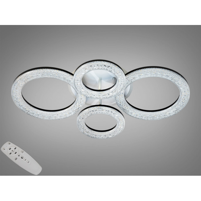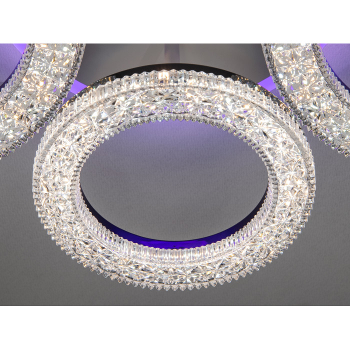 Перед вами сучасний зразок стилю та функціональності — стельова світлодіодна люстра з пультом і підсвічуванням потужністю 75 Вт. Її унікальний дизайн вирізняється кільцями з прозорого акрилу, що прикрашені декоративними бульбашками. Така конструкція створює неповторний ефект відблисків і тіней на стелі, додаючи приміщенню вишуканості. Прозорі акрилові плафони гармонійно вписуються в будь-який сучасний інтер’єр, відображаючи колір стелі та створюючи відчуття легкості та простору.