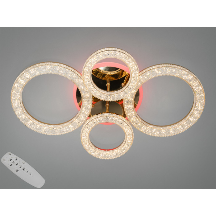 Перед вами сучасний зразок стилю та функціональності — стельова світлодіодна люстра з пультом і підсвічуванням потужністю 75 Вт. Її унікальний дизайн вирізняється кільцями з прозорого акрилу, що прикрашені декоративними бульбашками. Така конструкція створює неповторний ефект відблисків і тіней на стелі, додаючи приміщенню вишуканості. Прозорі акрилові плафони гармонійно вписуються в будь-який сучасний інтер’єр, відображаючи колір стелі та створюючи відчуття легкості та простору.
