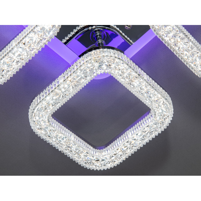 Особливістю цієї моделі лед люстри є вбудоване LED підсвічування задньої панелі, яке не тільки додає декоративного сяйва, а й створює ефект м'якого світіння навколо лед люстри. Це підсвічування додає приміщенню багатошаровості в освітленні, підкреслюючи сучасність та унікальність дизайну. Така стельова LED люстра з хромованим каркасом стане ідеальним вибором для тих, хто шукає стильне та функціональне рішення для освітлення.