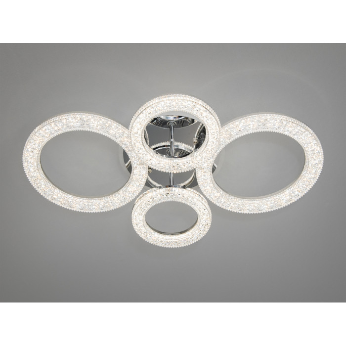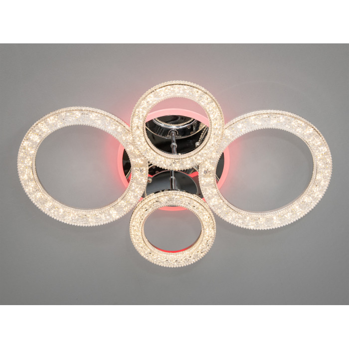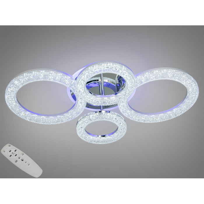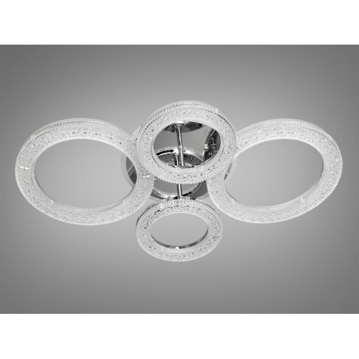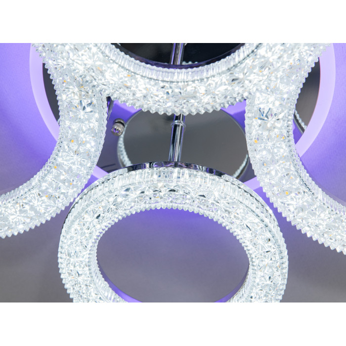Перед вами сучасний зразок стилю та функціональності — пристельова світлодіодна хромована люстра з пультом і підсвічуванням потужністю 75 Вт. Її унікальний дизайн вирізняється чотирма кільцями з прозорого акрилу, що прикрашені декоративними бульбашками. Така конструкція створює неповторний ефект відблисків і тіней на стелі, додаючи приміщенню вишуканості. Прозорі акрилові плафони гармонійно вписуються в будь-який сучасний інтер’єр, відображаючи колір стелі та створюючи відчуття легкості та простору.