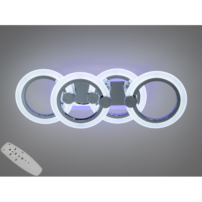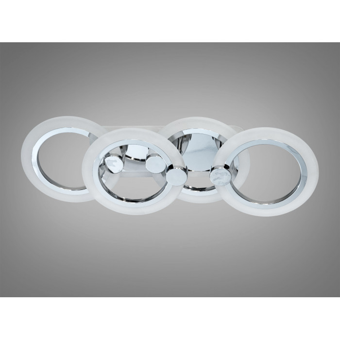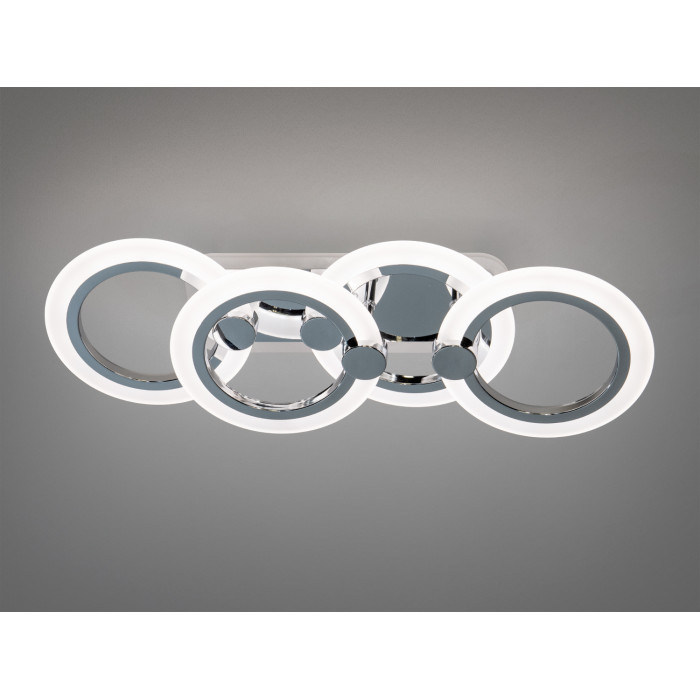 Світильник має хромовану поверхню, що додає йому блиску і стилю. Завдяки цьому, він гармонійно поєднується з іншими елементами інтер′єру, створюючи цілісний вигляд. Три LED кільця випромінюють холодне світло, надаючи приміщенню особливого шарму.