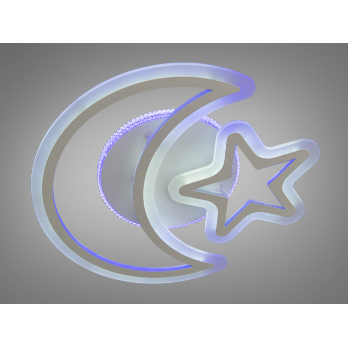 Дизайн світильника включає в себе три ключові елементи: місяць, зірку та простір, кожен з яких підкреслюється сяйвом led освітлення. Контурна форма місяця з м'якими переходами гармонійно обіймає зірку, а рифлена поверхня пристельової підсвітки створюють ілюзію зоряного неба, особливо коли світильник освітлено. Частина світильника, що формує круг, є метафорою космічної гармонії, підкресленої підсвічуванням, яке надає цілій конструкції легкості та плавності.