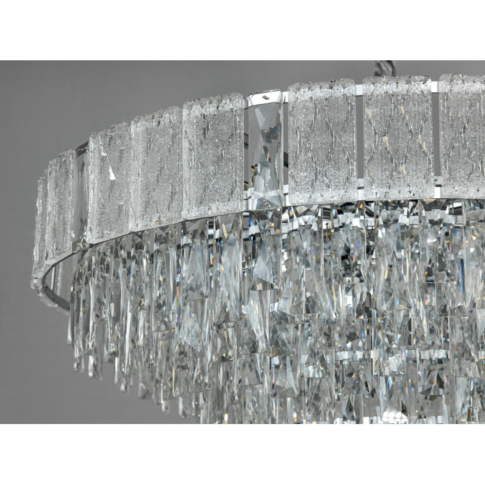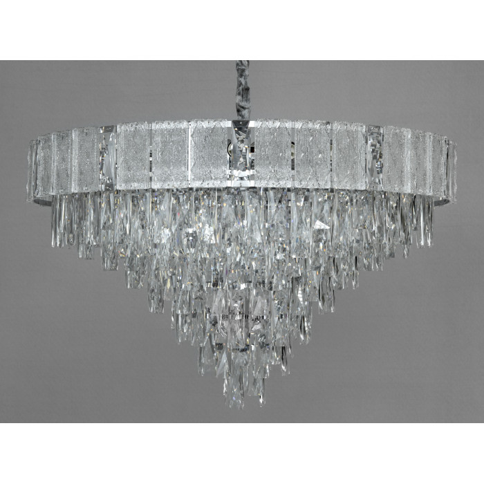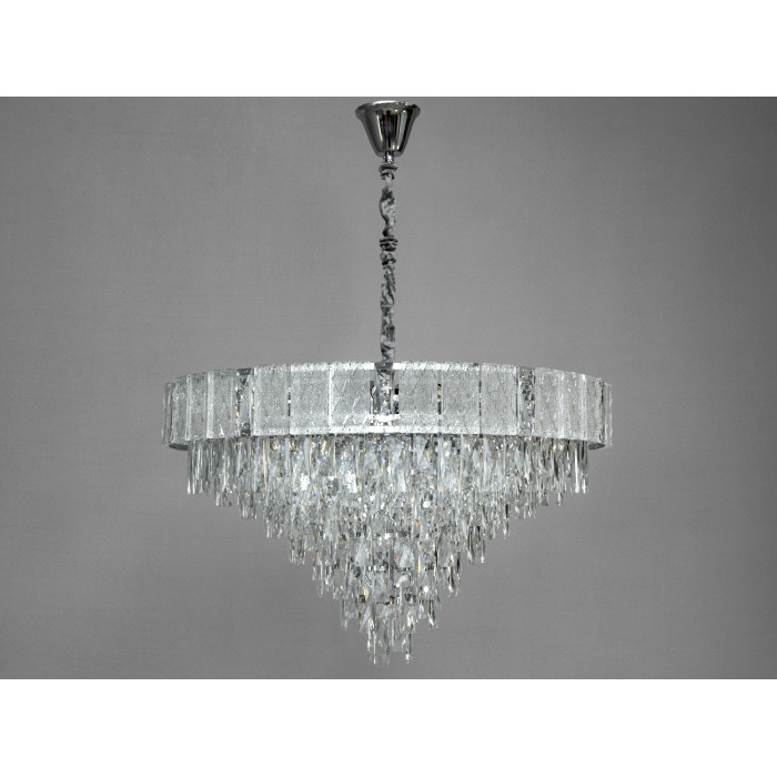 ЛЮСТРИ НОВИНКИ 2024! Стильна підвісна кришталева люстра від українського виробника ТМ «Діаша» є вершиною сучасного дизайну і майстерності, представляючи в собі блиск і витонченість, які можуть оживити будь-яке просторе приміщення. Оснащена вісімнадцятьма лампами патрон Е14, ця хромована люстра з кришталю не просто освітлює кімнату, а виливає світло, перетворюючи звичайний інтер'єр на вишукану зону комфорту і розкоші.