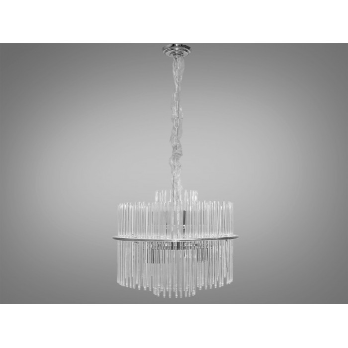 ТМ «Діаша» представлено величну підвісну люстру квадрат, втілення унікальності та розкоші. Ця люстра складається з сотень тонких скляних паличок, кожна з яких майстерно підвішена та дбайливо розташована, створюючи візерунок, що нагадує кришталевий водоспад світла. Кожен скляний елемент відбиває та переломлює промені світла, іскрячись та блищачи, наче діаманти під світлом вечірнього сонця.