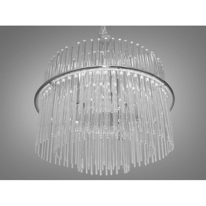 Кожна лампа з цоколем Е14, яка використовується в цій конструкції, випромінює тепле, затишне світло, яке ідеально підходить для створення м'якого та приємного освітлення. Лампи розташовані таким чином, щоб світло рівномірно розподілялося через скляні палички, створюючи ефект повного занурення у світлову гармонію.