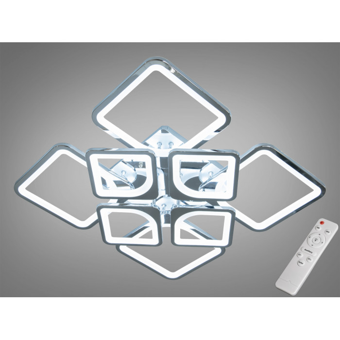 Лед люстра під стелю поставляється в заводській упаковці, електрика вже зібрана. LED люстра складається зі світлодіодної стрічки, блоку живлення світлодіодної стрічки, електронного димера і блоку управління пультом. Лед люстра з пультом в комплекті.