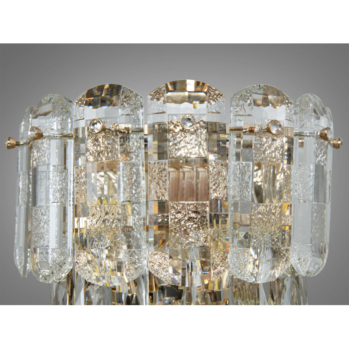 Унікальна особливість цього світильника полягає в його здатності трансформувати атмосферу простору, де він розташований, привносячи в нього відчуття розкоші та елегантності. Золотистий відтінок каркасу разом з чистотою кришталів створює ігри світла, які зачаровують і заворожують. Кожен поворот кришталю відображає і переломлює світло, створюючи динамічний і живий візуальний ефект.