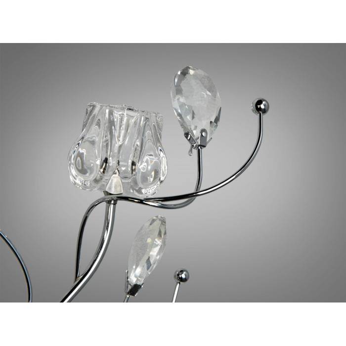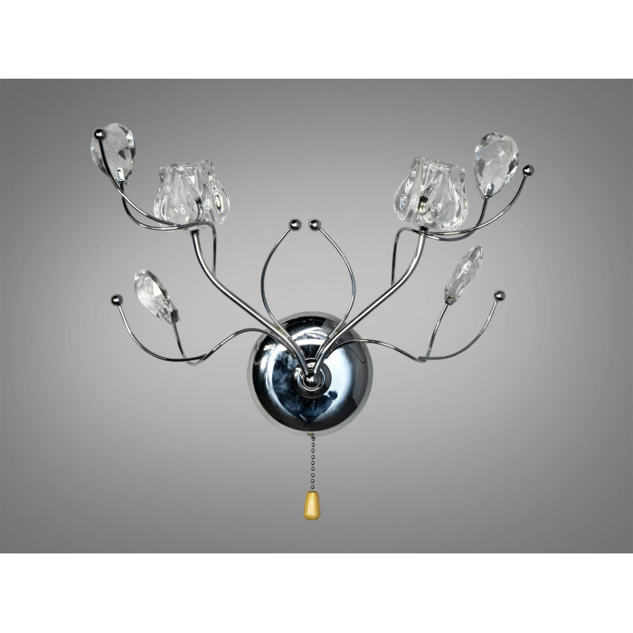 Ця модель бра оживляє стіни, перетворюючи їх у полотно для ніжного букету з квітів, які здаються наче вирощені зі світла. Золотисті стебла граційно вигинаються, тримаючи на собі блискучі кристали, що імітують квіткові бутони та пелюстки. Дизайн з елементами кристалів додає світильнику привабливого блиску та ефекту розсіювання світла, яке створює неповторну атмосферу у просторі.