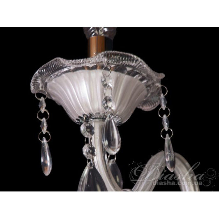 Комбінація білого скла та виблискуючих кришталів є класичним вибором, який ніколи не виходить з моди, забезпечуючи тривалу привабливість світильника. Можливість вибору між золотим та хромованим варіантом дозволяє індивідуалізувати світильник, забезпечуючи його відповідність до будь-якого дизайну та колірної схеми інтер'єру.