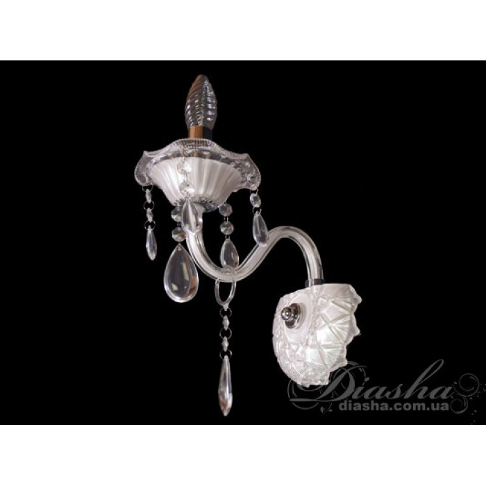 Представлено однорожкове бра від торгової марки "Діаша", що є втіленням класичної елегантності та легкості. Естетика цього світильника вирізняється його ідеально білим кольором скла та сяючим блиском прозорих кришталів, створюючи вишуканий та романтичний вигляд.