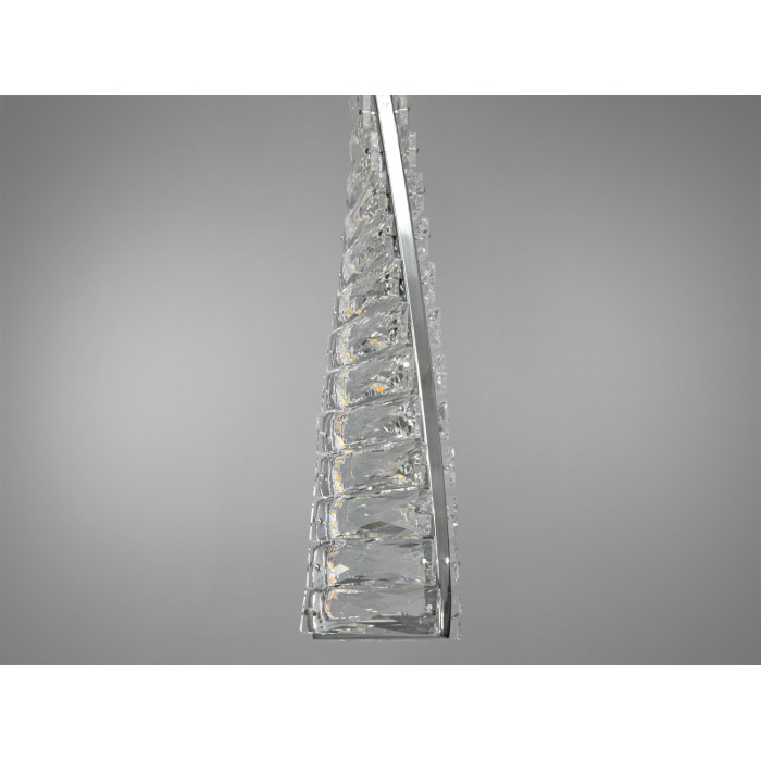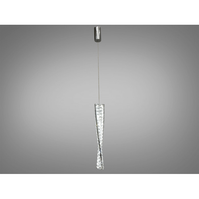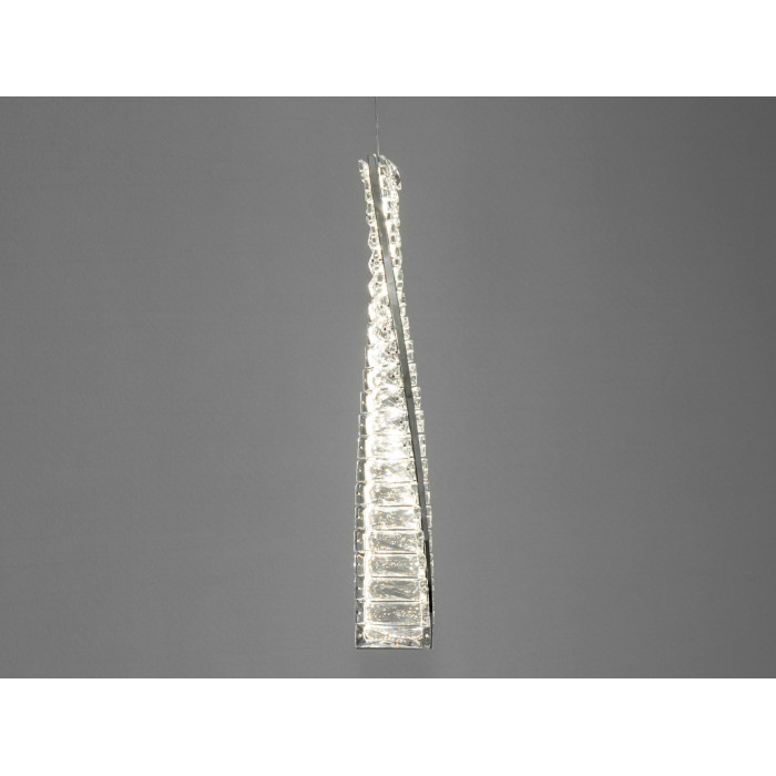 На фотографії зображено стильний дизайнерський світлодіодний світильник підвіс від українського виробника ТМ "Діаша". Ця модель є втіленням унікальності підвісного лед світильника, який стане не просто освітлювальним приладом, а справжнім акцентом у інтер'єрі. Колір світильника – хром, що надає йому сучасного вигляду та легко вписується в більшість інтер'єрів, особливо ті, які віддають перевагу металевим акцентам чи сучасному мінімалізму. Кріплення до стелі здається ледве помітним, що створює ілюзію, ніби світильник плаває в повітрі. Такий ефект підкреслює легкість та витонченість дизайну. Із потужністю 15 W цей світильник є енергоефективним та пропонує яскраве, але не сліпуче освітлення.