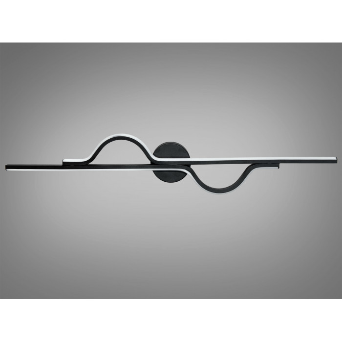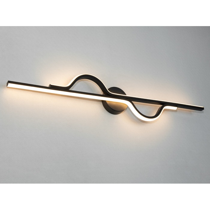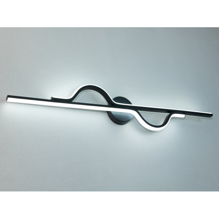 Цей настінний led світильник — втілення сучасного дизайну, що гармонійно поєднує функціональність та естетику. Його лінійна конструкція доповнена хвилеподібним елементом, що створює ілюзію руху. Чорний матовий металевий корпус додає світильнику строгості та витонченості, роблячи його універсальним елементом для будь-якого інтер’єру. Легкі світлодіодні лінії випромінюють м’яке та рівномірне світло, яке ніжно підкреслює текстури стін і додає приміщенню затишку.