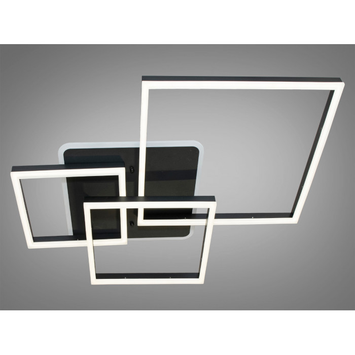 ТМ "Діаша" представлено стельову LED люстру, яка є вершиною сучасного дизайну. Її дизайн вирізняється за допомогою трьох квадратних плафонів різного розміру, що створюють геометричну композицію, повітряну і легку, завдяки тонким межам. Плафони доступні у кольорах білий, чорний, коричневий та сірий, що дозволяє інтегрувати світильник у різноманітні колірні палітри інтер'єрів.