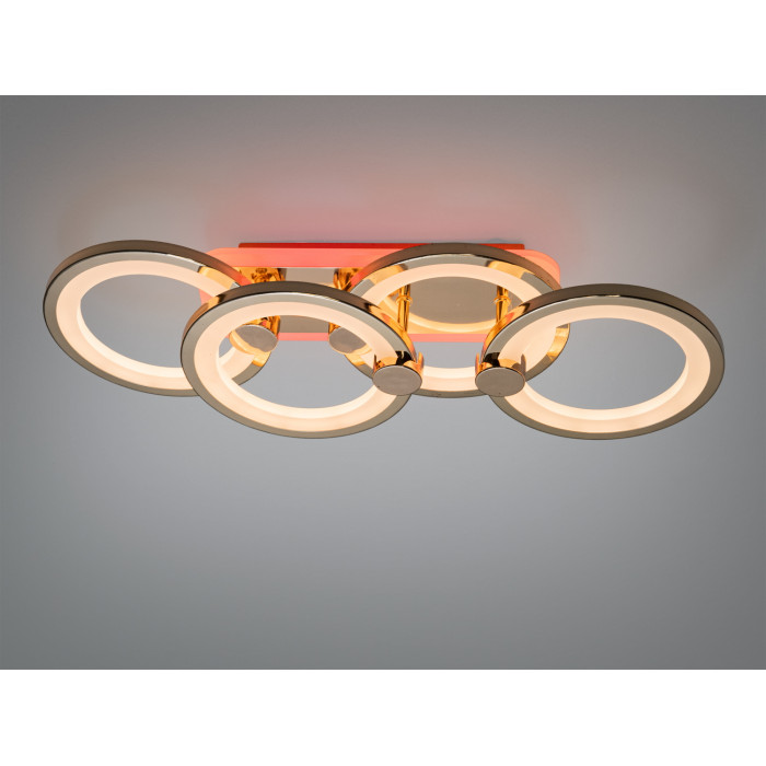 З хромованими акриловими плафонами, що мають форму круглих кілець, розташованими на двох рівнях, ця Led люстра стельова створює захоплюючу композицію в просторі. Внутрішній контур кілець, прикрашений акриловими розсіювачами, створює елегантне та ніжне освітлення, додаючи простору м'якість та тепло.