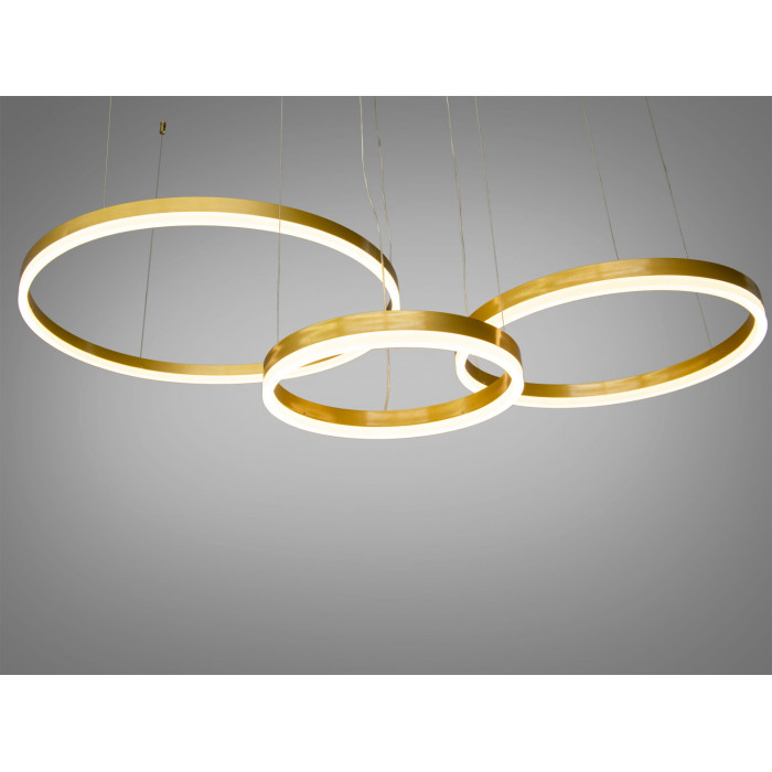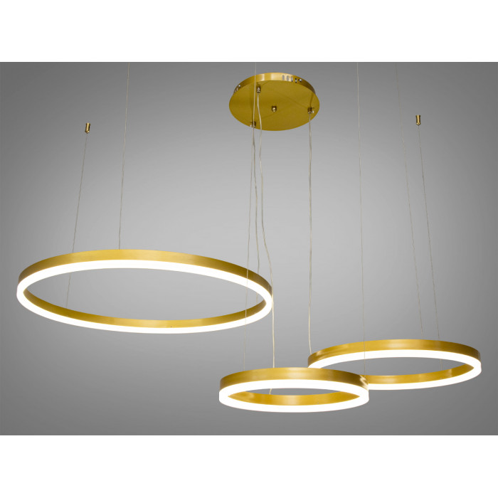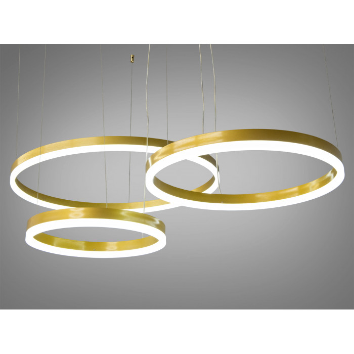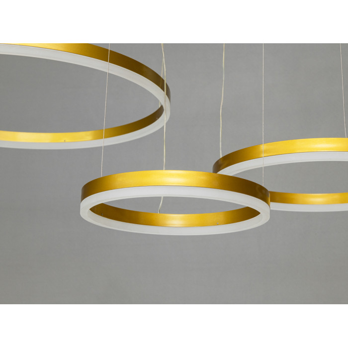 Конструкція з чотирьох кілець люстри, що ніби ширяє в повітрі на тонких металевих тросах. Найбільше кільце діаметром 80 см панує над іншими, тоді як менші кільця 60 см, 40 см і 20 см доповнюють композицію, створюючи багатогранність та глибину.