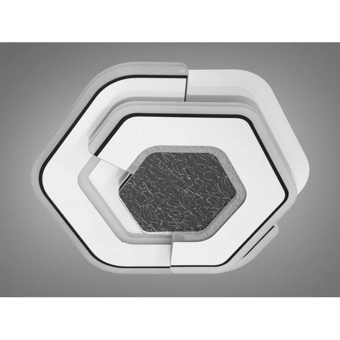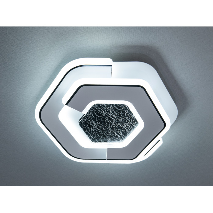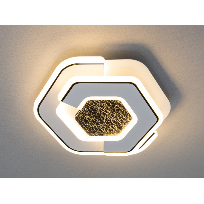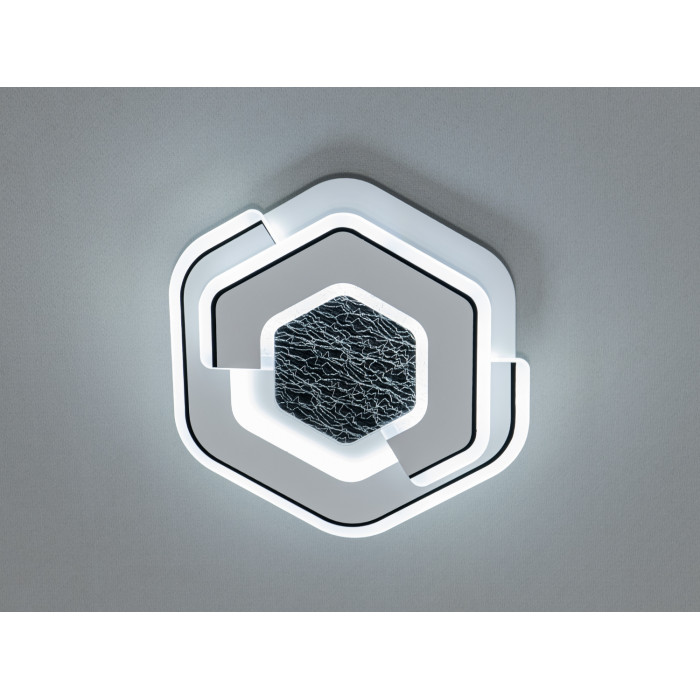 Сучасний дизайн, інноваційні технології та неперевершена функціональність – усе це поєднано в сучасному LED світильнику з регулюванням кольору світла 44W від ТМ "Діаша". Його оригінальна форма у вигляді шестикутника зі стильними прорізами створює відчуття динаміки та просторової глибини. Центральний декоративний елемент із текстурованою поверхнею нагадує природний малюнок мармуру, що вигідно контрастує з гладкими білими лініями корпусу. Гра світла та тіней, яку створює цей світильник, перетворює інтер'єр у справжній витвір сучасного мистецтва.
