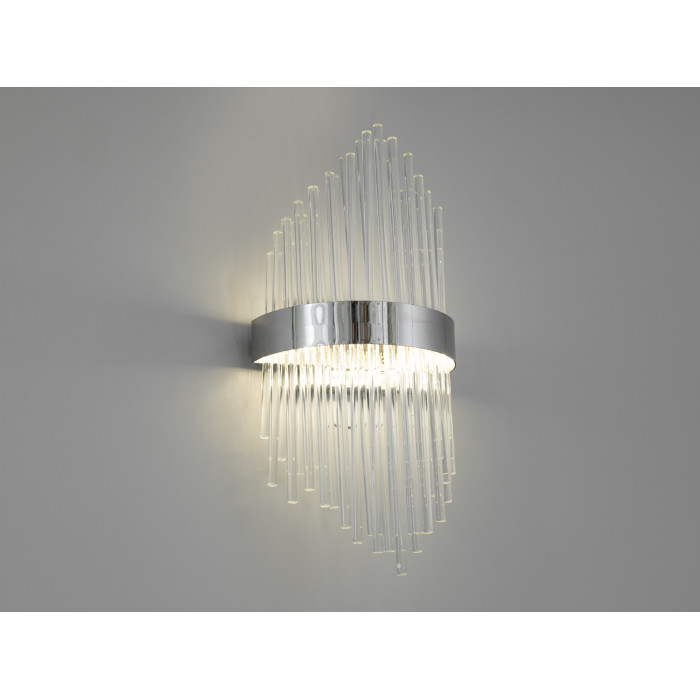 Освітлювальний пристрій від ТМ "Діаша" новинка на 2024 рік є майстерним злиттям технологічної новизни і дизайнерської думки. Він випромінює не лише світло, але й вишуканість у кожній деталі. Цей настінний світлодіодний прикроватний світильник 2024 потужністю 18 Вт з хромованим поясом огортає ніжно відполіровані скляні палички, створюючи вражаючий ефект вишуканості, який освіжить будь-який інтер'єр сучасністю та світлом.