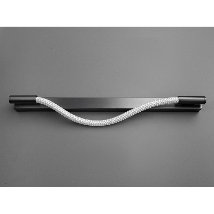 Чорно хромовані елементи на кінцях шланга відблискують світло, створюючи ілюзію технологічної ріки, що струменить світлом і з'єднує простір із високою точністю виконання. Тканинна оплітка шланга, ніжна на дотик, контрастує з холодним металом, додаючи відчуття домашнього затишку та тепла, неначе вона зплетена із волокон ніжного ранкового світла.