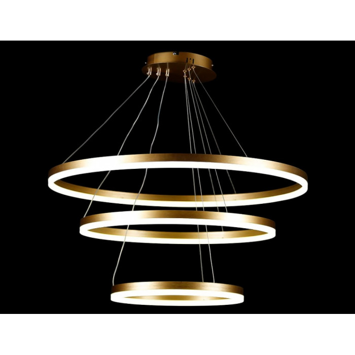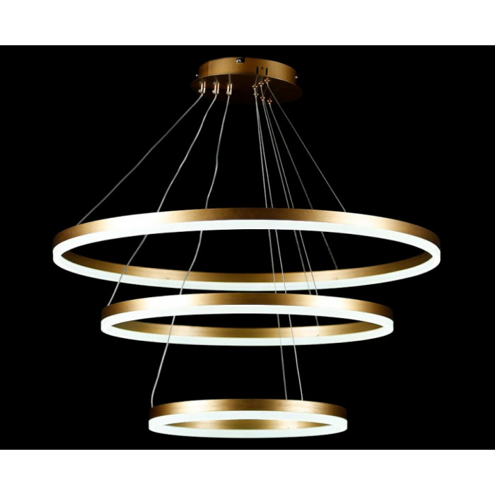 Стиль:Светодиодные люстрыВысота, см:45-180Диаметр, см:80Количество ламп:3MAX мощность лампы, Вт:288Напряжение, В:220Патрон:LEDЦвет:золото, белый.Материал:металл, акрил.Производитель:Splendid Ray(Китай)Дополнительная информация:регулировка высоты, пульт в комплекте, температура света теплый, холодный, нейтральный, возможность регулирования температуры и интенсивности света (димер), наличие памяти последнего рабочего режима при следующем включении светильникТип крепления:на кронштейн