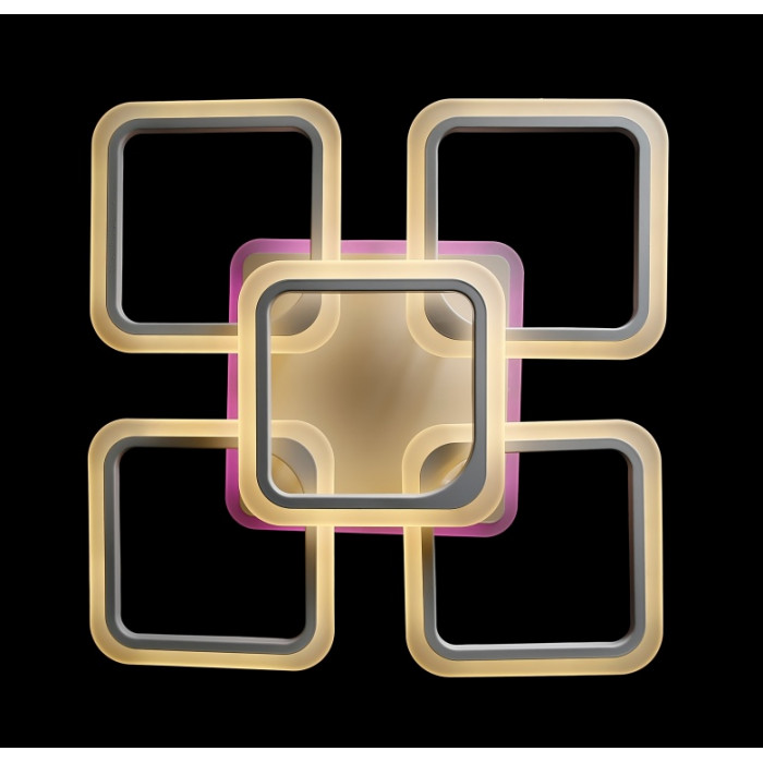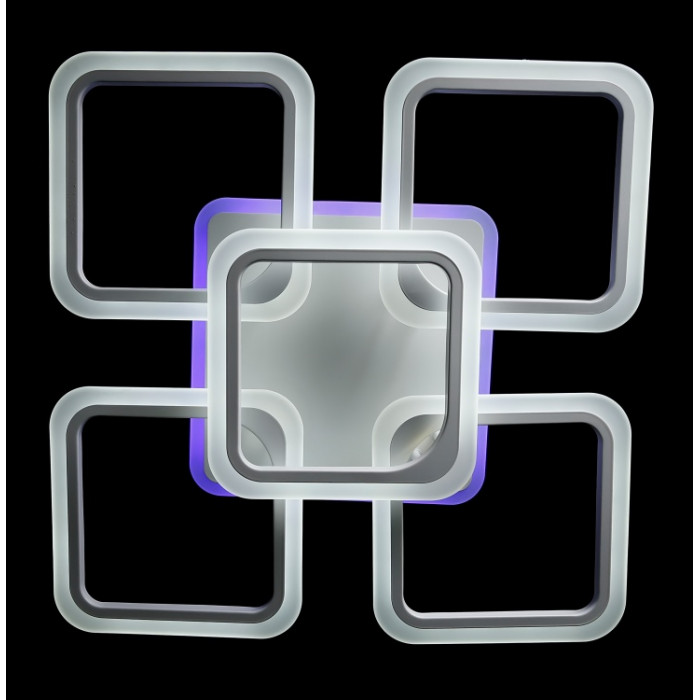 | Дополнительная информация | пульт в комплекте, температура света теплый, холодный, нейтральный, возможность регулирования температуры и интенсивности света (димер), наличие памяти последнего рабочего режима при следующем включении светильника, синяя и фиолетовая подсветка основания, сторона малого квадрата: 25/25, сторона большого квадрата: 30/30 см. |
