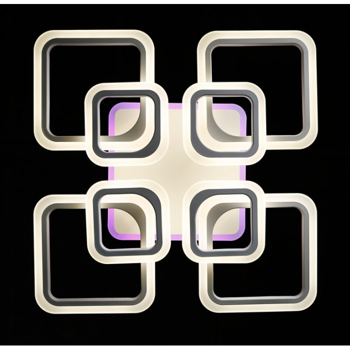 | Дополнительная информация | пульт в комплекте, температура света теплый, холодный, нейтральный, возможность регулирования температуры и интенсивности света (димер), наличие памяти последнего рабочего режима при следующем включении светильника, синяя и фиолетовая подсветка основания, сторона малого квадрата: 16/16, сторона большого квадрата: 25/25 см, сторона основания: 30/30см. |